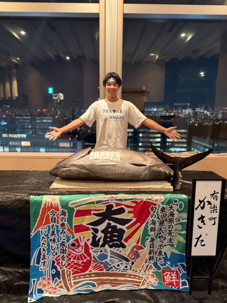 ※有楽町かきだ店舗(新宿駅徒歩すぐ)でマグロ解体ショーを実施することも可能です!開催場所にお困りの主催者の皆様、ぜひご連絡ください。今後も送別会・感謝イベント・留学壮行会などの特別なひとときに、マグロ解体ショーをご検討の方はお気軽にお問い合わせください。