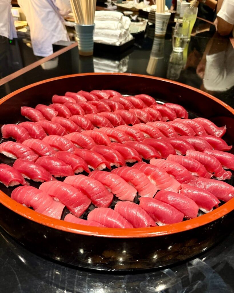 - 提供内容:マグロ鮨+5種の寿司(イカ、サワラ、カンパチ、ヒラメ、サーモン)、日本酒飲み放題