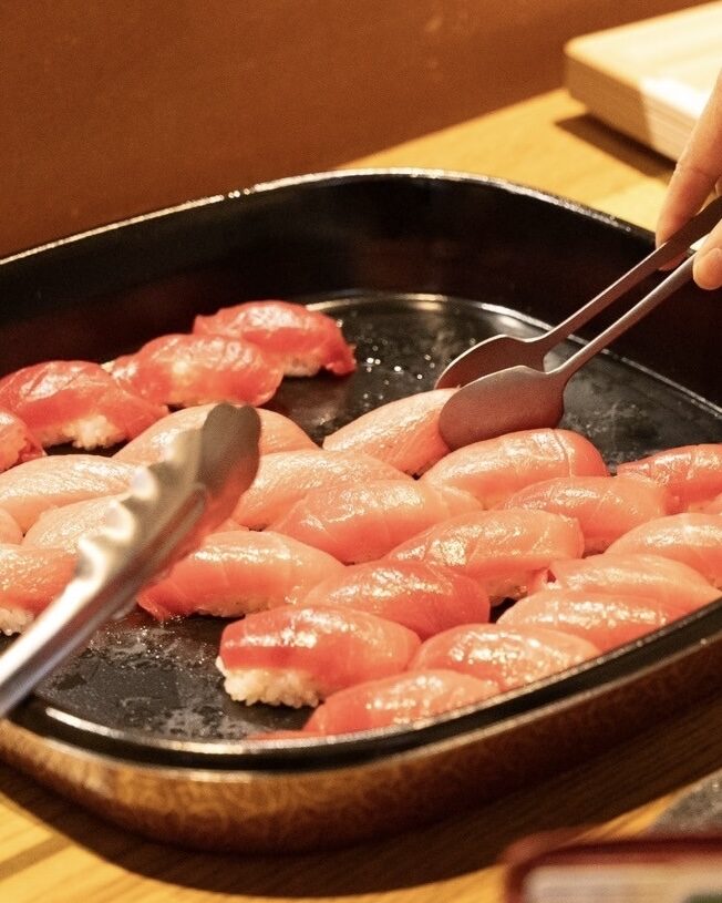 毎日店舗で大量の素材を扱うため、出張鮨でもロスが出ない仕組みを確立。端材は店舗で活用できるため、鮮度の高い本マグロや高級ネタを低価格で提供できます。市場仲卸との強いパートナーシップにより、大容量提供でも "価格以上の満足度" を実現します。